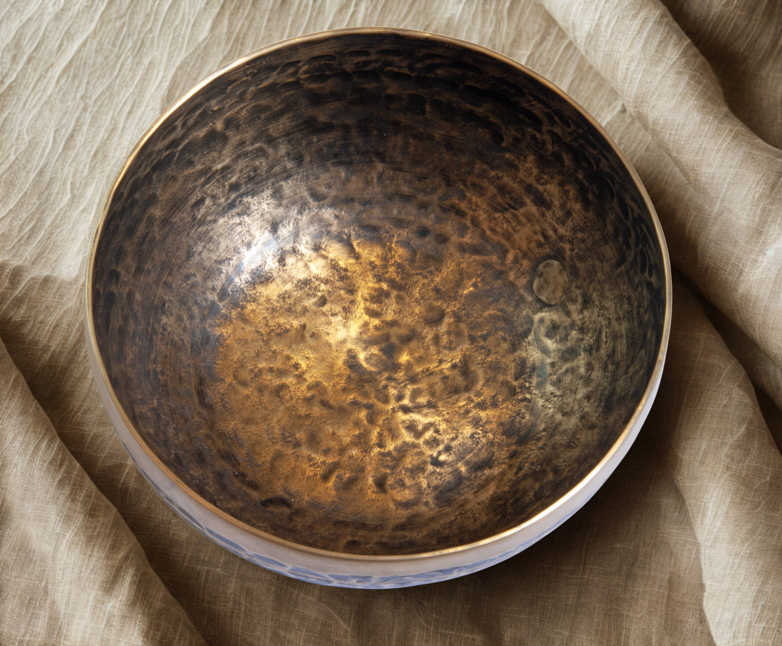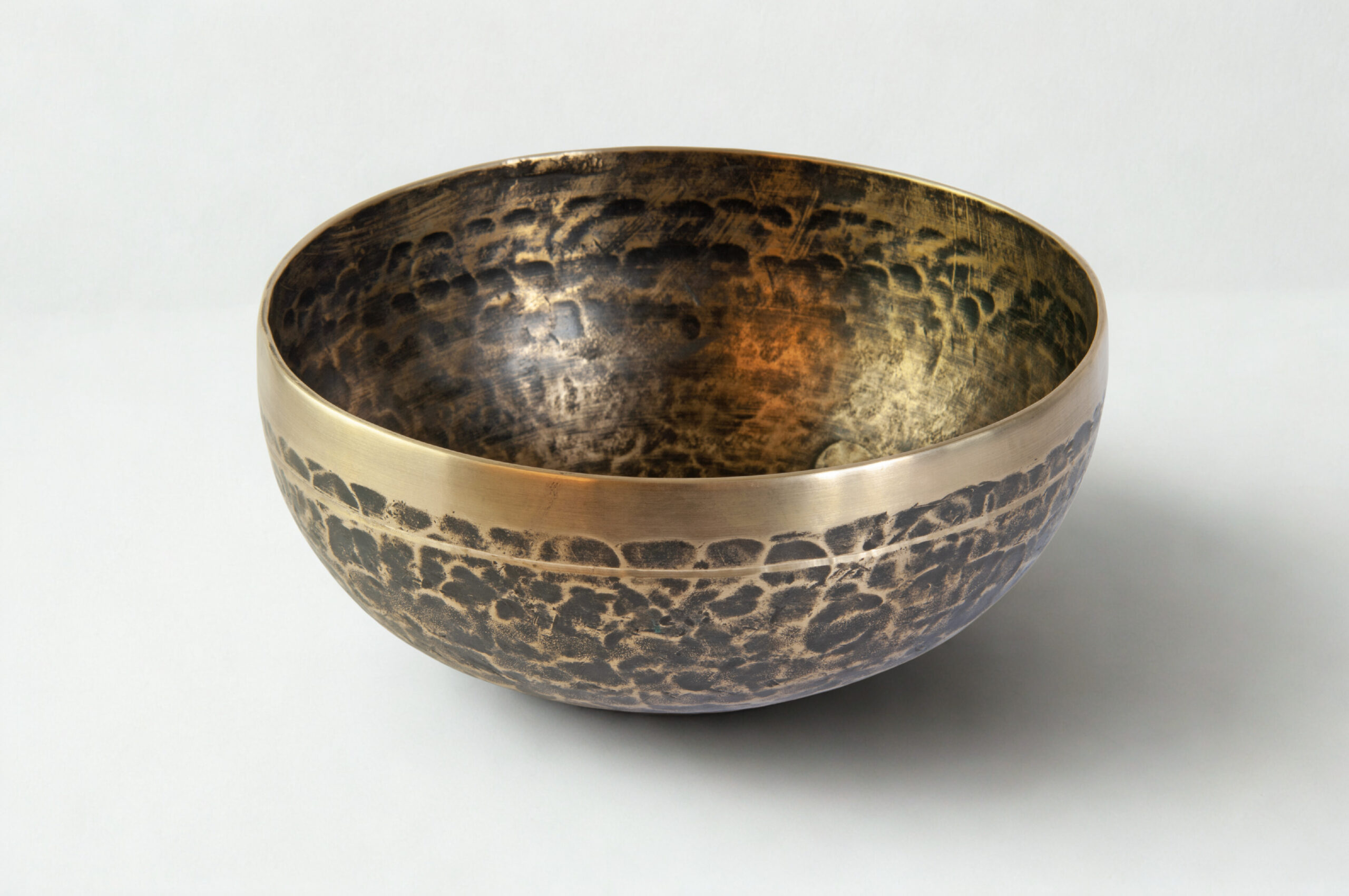 Håndfremstillet tibetansk klang- og syngeskål fra Nepal.