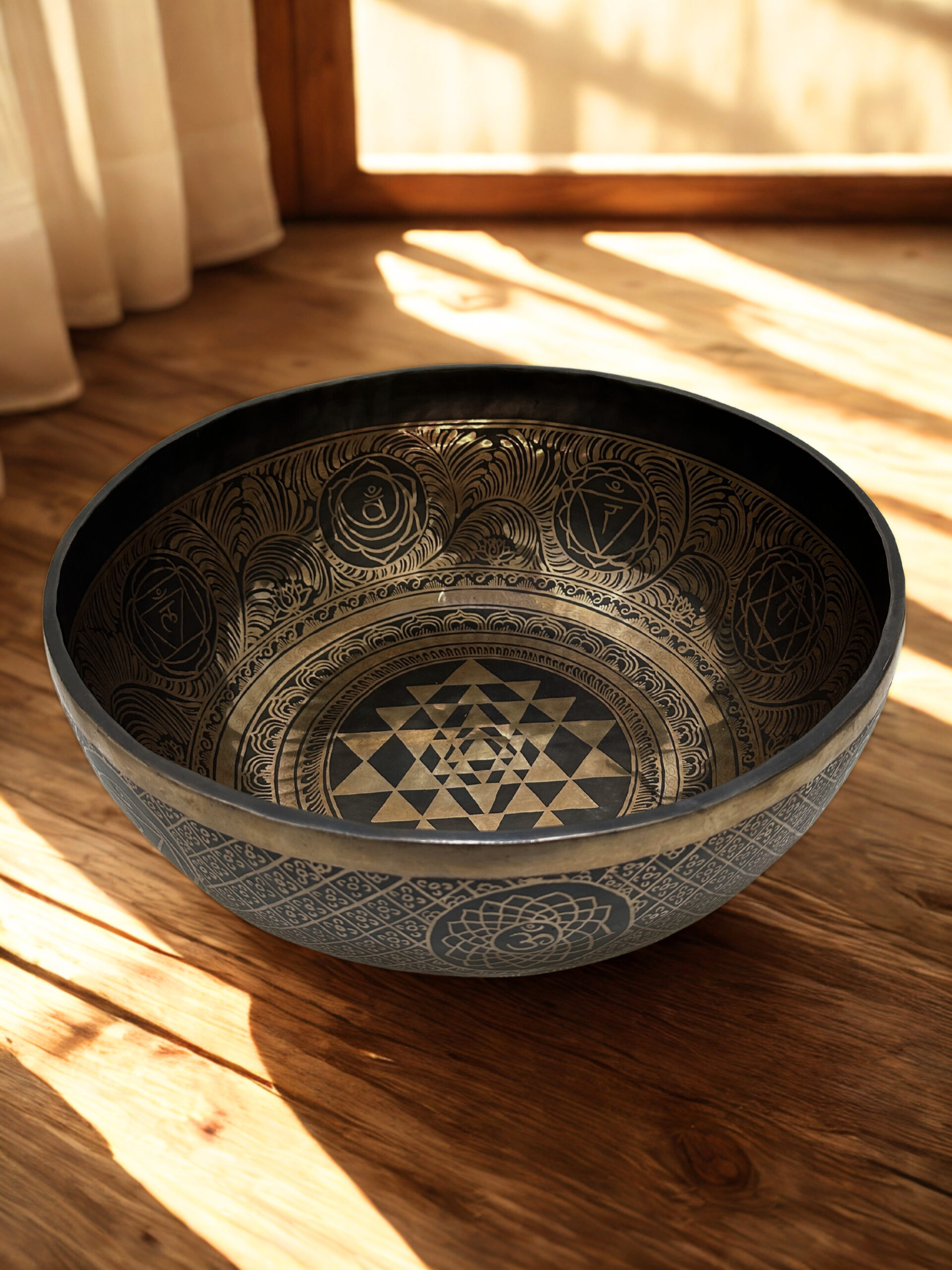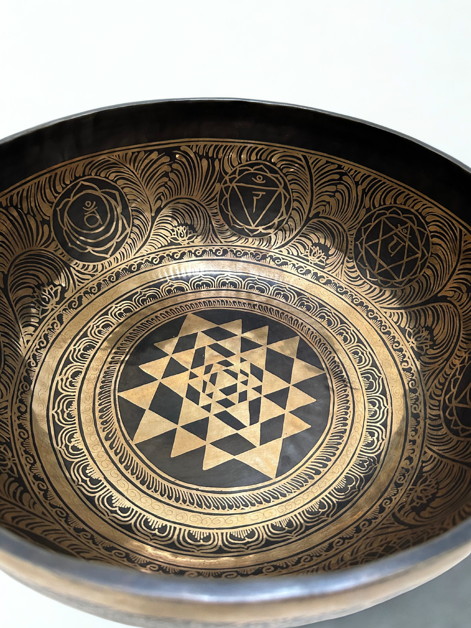 Indvendigt dekoreret med Sri Yantra omkranset af chakra-symboler.