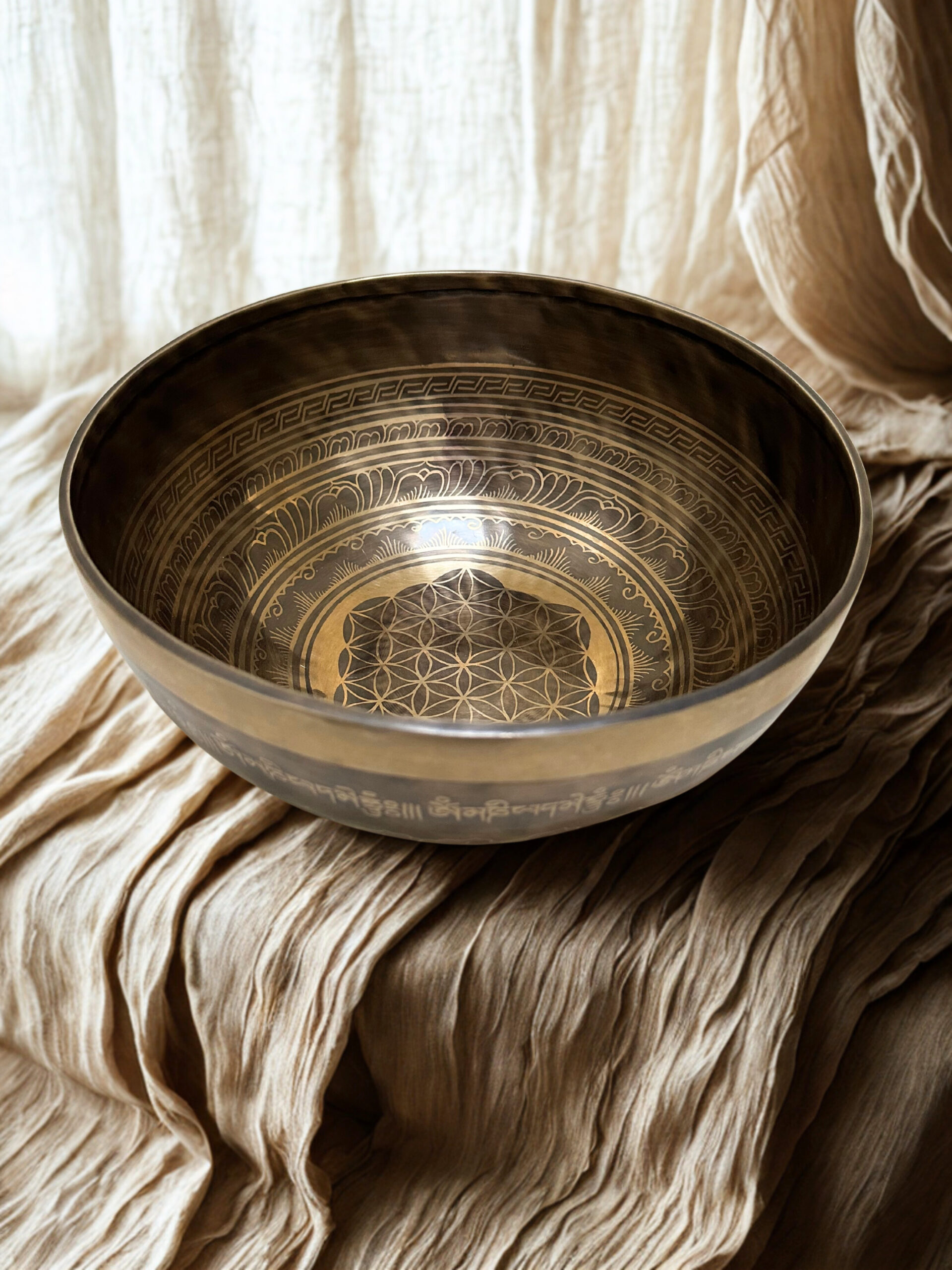 Hver skål er unik. Klang- og syngeskålene eller healingskåle, som de også kaldes, er fremstillet i hånden lige fra “udbankningen” af metallet til de smukke dekorationer. Metallegeringen er helt speciel og består af 7 forskellige metaller: Guld, sølv, kviksølv, kobber, jern, tin og bly.
