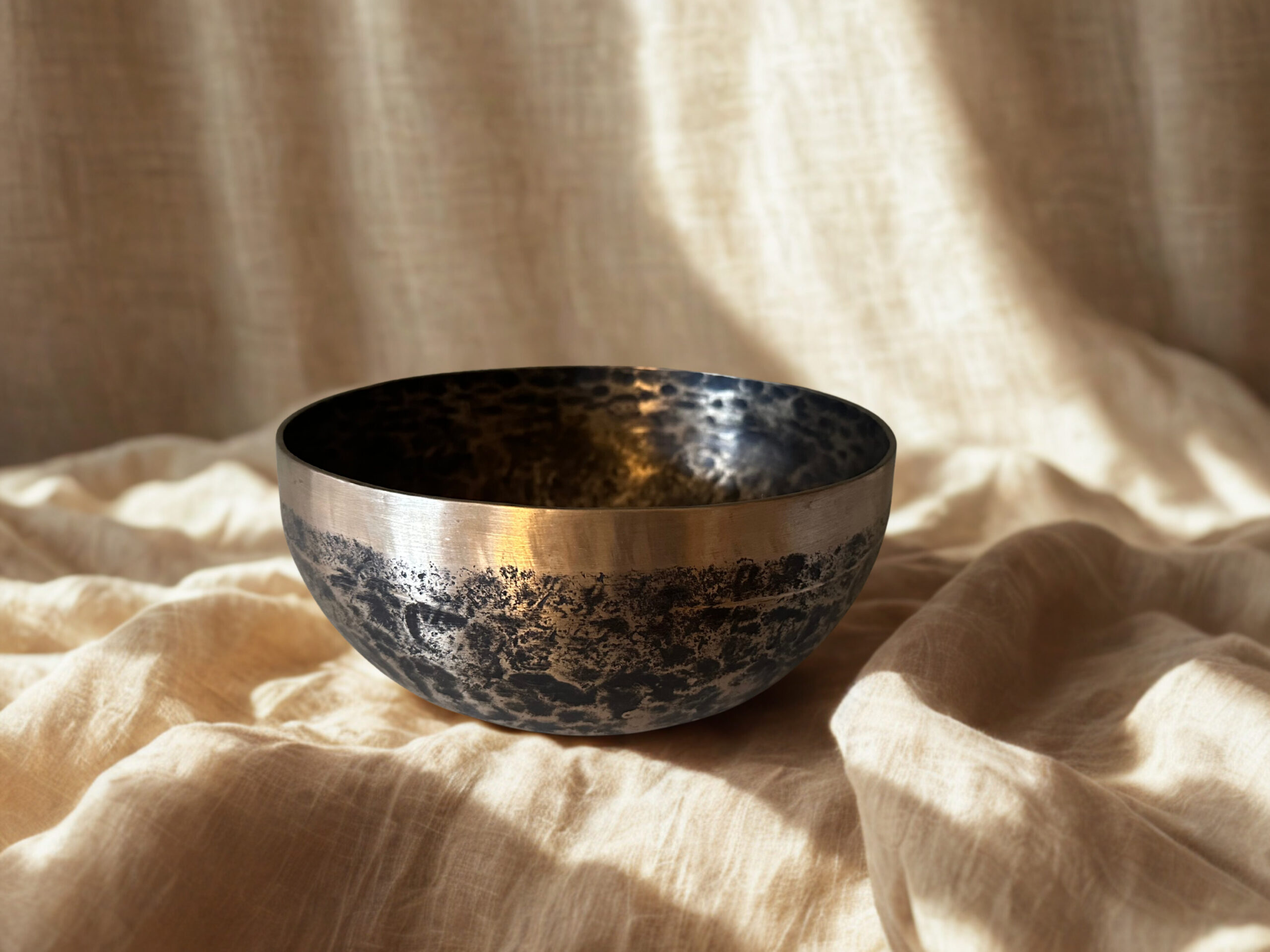 Håndfremstillet tibetansk klang- og syngeskål fra Nepal.