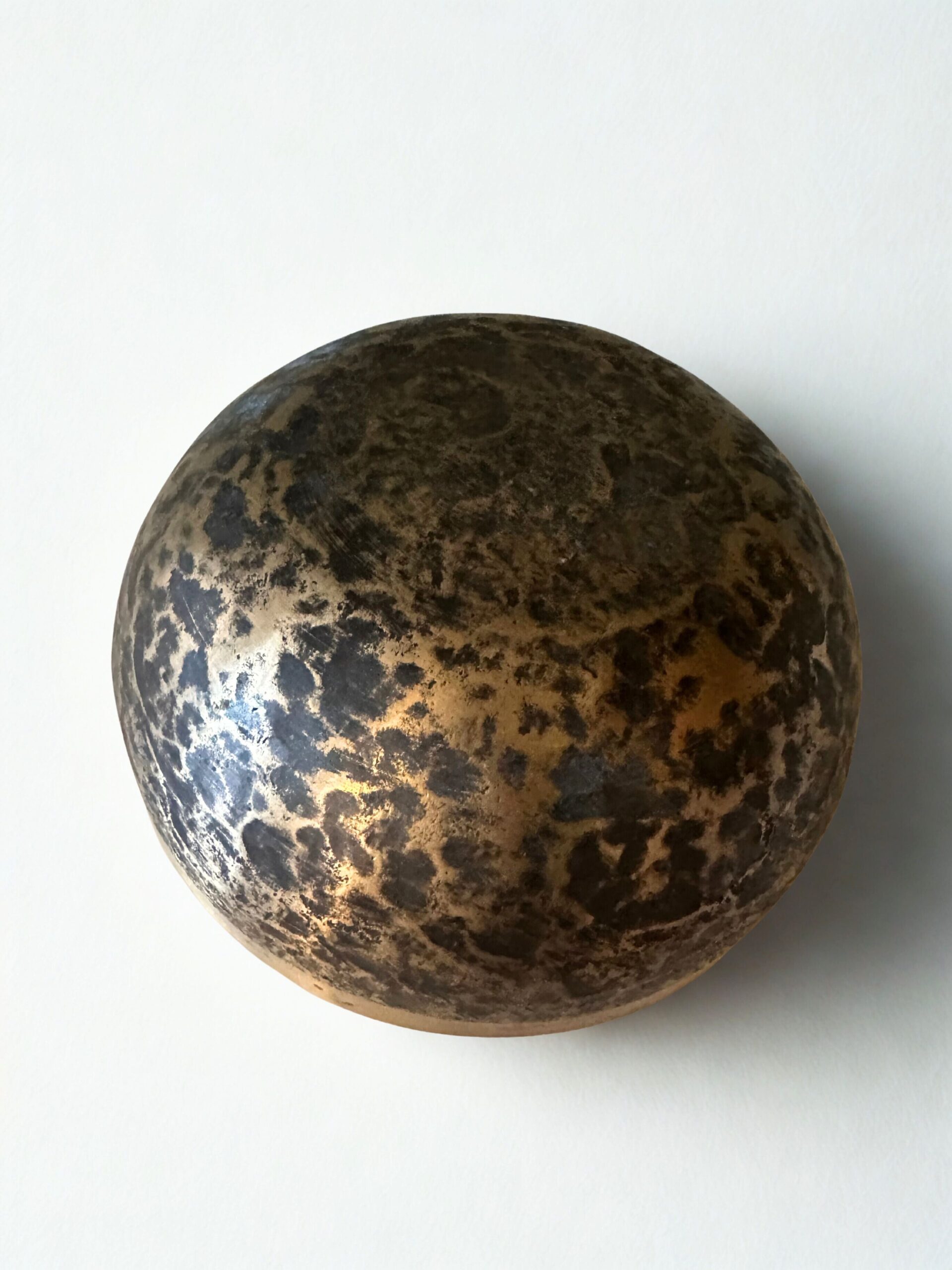 En klang- og syngeskål med antik finish.