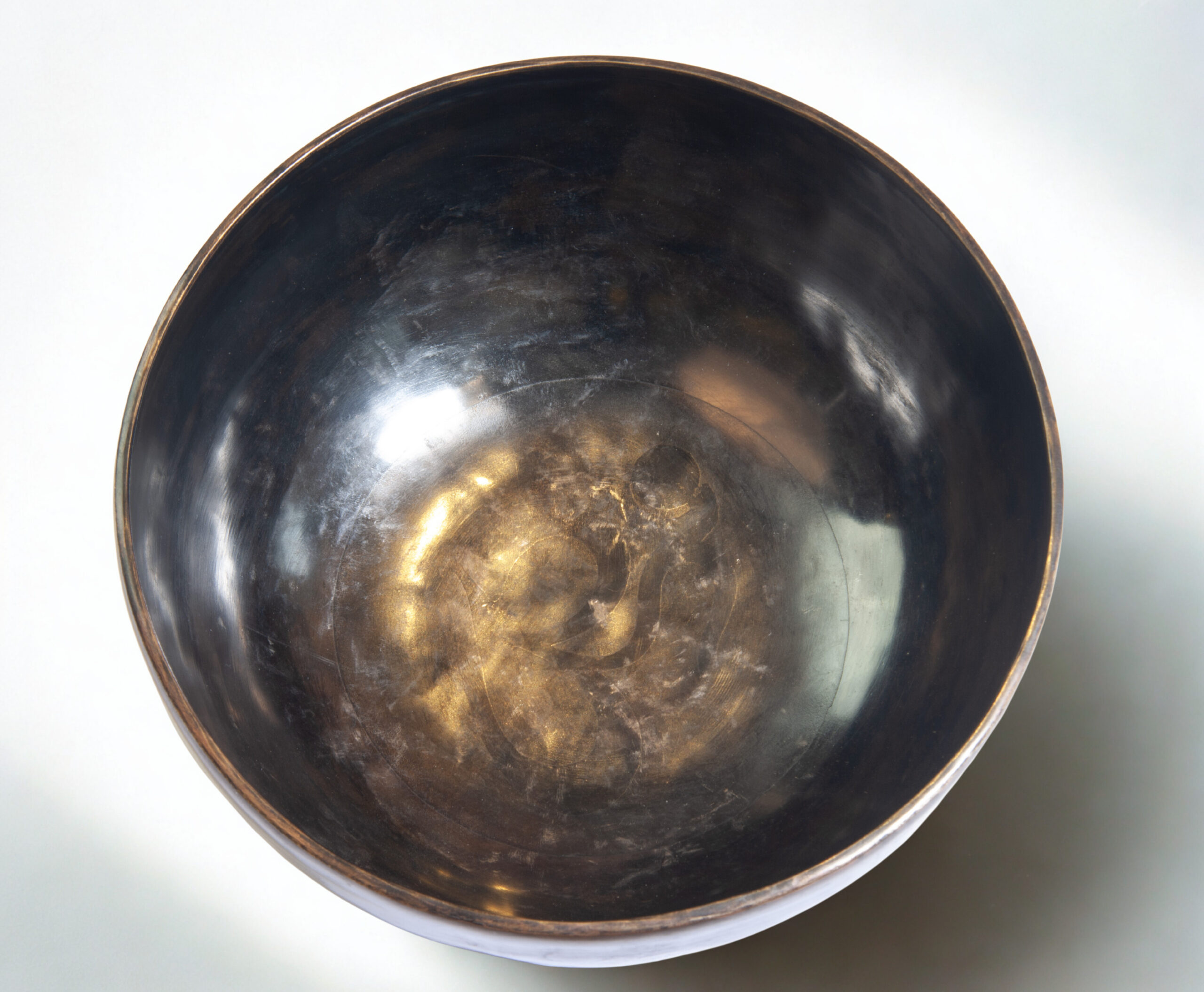 Håndfremstillet tibetansk klang- og syngeskål fra Nepal.