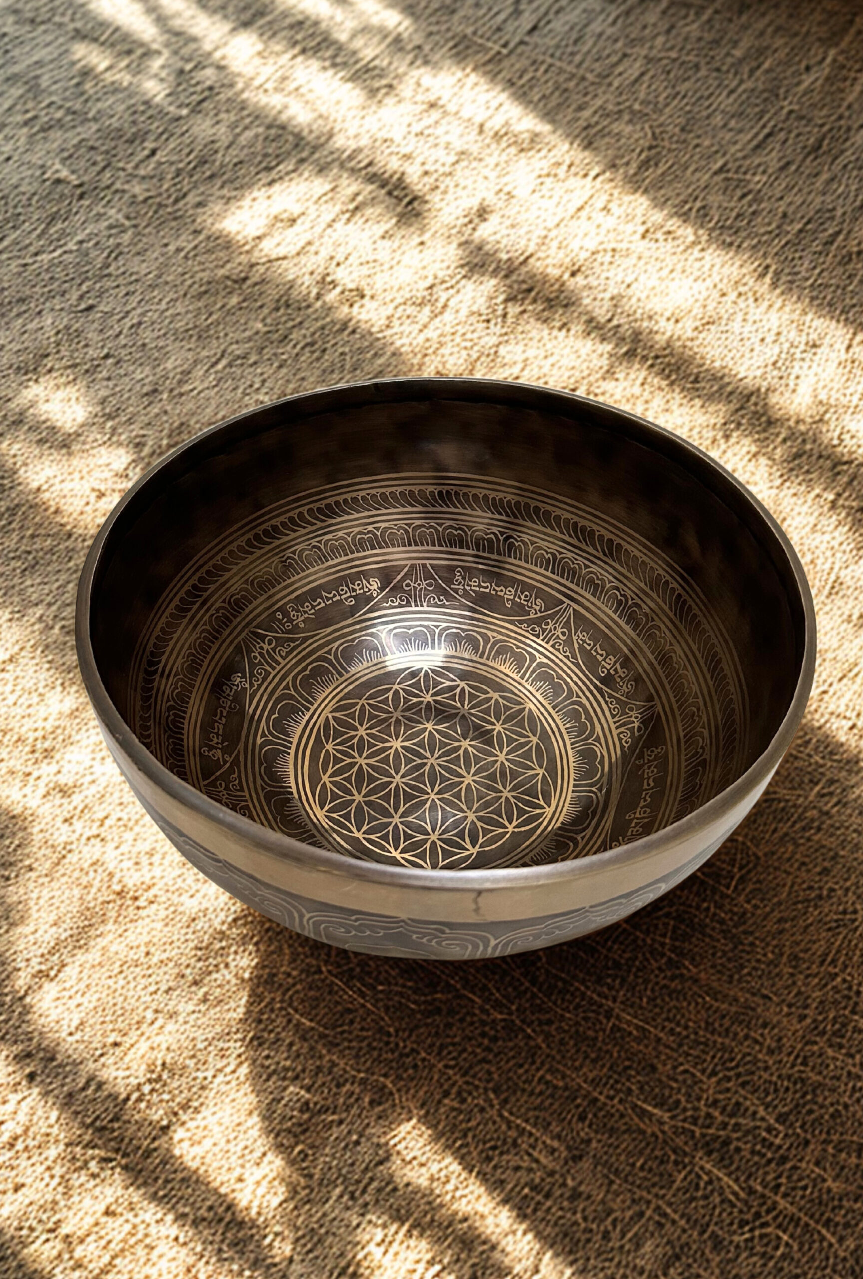 Hver skål er unik. Klang- og syngeskålene eller healingskåle, som de også kaldes, er fremstillet i hånden lige fra “udbankningen” af metallet til de smukke dekorationer. Metallegeringen er helt speciel og består af 7 forskellige metaller: Guld, sølv, kviksølv, kobber, jern, tin og bly.